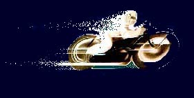 chill air. Motorcycles. Do their images evoke subliminal illusions? Spitfire dreams? Like those illustrious WWII aircraft? Perhaps. A secret life begins as a private emotion washing over me when I swing my leg over the seat of my Suzuki 1100 Katana. The rush as the engine catches takes the gray out of my hair, erases the creases from my tired countenance and dispels the lethargy from my limbs. A foot twitch, a snick into first gear and I’m taking off on a two wheeled time machine. Age has thundered by and I am now a man with a worn face and worn leathers wearing a red bandana and a steel knuckle attitude. Worn but not worn out. Yet I can be a courageous young pilot climbing into a perilous sky, venturing into a hidden, fantasy realm. Twist my wrist. Department of Acceleration - Ministry of Speed. Churning horsepower. Leave my heart in a little tray at the starting line, come back for a gulp of blood in five seconds - back in ten for a pint of nerve. I simply have to sit there to clear out my cholesterol. Triple bypass in steel. Motorcycles crammed into showrooms are like impatient packs of hunting hounds to me. Ready to go, anxious to run. Cry Havoc! and let slip the dogs of war - and Shakespeare never laid eyes on a motorcycle. The sleek Katana attracted me the moment I saw it crouching amid those other glinty-eyed mechanical beasts, vents and scoops expressing the Science of Swift. Superb paint; a slippery black glinting of blue in angled light like a scintillation of midnight sky. The electric windscreen can be thumbed up and down like a Star Wars deflector shield. ‘Use the force, Luke.’ The Whirling Dervish wheels are doing ninety at standstill, the drill pattern in the discs like a power saw blade, slicing into the wind, cutting down the miles. This is the Samarai long sword with which to slay the gray dragon of dreariness. Steal his fire and stoke my furnace. This bike has ABS, an Anti Boredom System. Who needs to stop? Just go. Down the road, over the hills, playing the Sea to Sky highway, singing across the Tyrol or whispering through the hush of the Dordogne Valley into Lifetime. I know where oblivion is and I can hide there. The game is afoot. You’ll catch a glimpse of me slashing across the pavement, a stab of sunlight and I’m gone, chasing my vanished youth if you like. But now I am a young rider, alert, aggressive, pitched forward with deliberate intent - from a line of William Aytoun; Like a tempest down the ridges, swept the hurricane of steel. I am a Royal Knight plunging fearlessly into the dark den of danger, reigning my black champing steed, brandishing a flashing Excalibur. A dauntless paladin in the lists who gives no quarter and asks none. Vanquishing the chimera of languor. No need for fear because I’m loyal to the Order. And I can liquidly morph right there before your eyes. Become a floating osprey, free on the thick morning air, drifting, knowing a capricious wind, plummeting out of a sapphire sky as a swift aerial predator raking the water surface with talons of carbon steel. My Katana is a lunging black panther. It has STEALTH too. I can sneak up on some non-dreamer and suck his soul into the air scoops, ram it through the engine and waft it out in misty patches of white fog to hang over the highway as a hot, acrid scent. Such is the fate of the left-brained. There’s no other sign that I have passed this way. But do I need a bike that goes fast enough to project me into space? A flaming firebrand that will sling me around the sun in elliptical orbit? Can I pour in a slick verve with the fresh oil? Fill the tank with high octane courage? I am quiet strength with potential potency. Fury lurks beneath my steady gaze. Do I need to answer questions? I slide alongside the pearlescent white of a long frothing beach - throbbing engine, rumbling surf, motocross waves, frosty spray - then sweep skyward as a spiraling eagle until my clarion exhaust howl calls forth angels, six-winged seraphim standing sentry over a sacred place. Michael, my guardian angel, allows me safety amid his pillared heavens. I touch his cool stainless sword. I am sunlight glinting through storm clouds. My machinery is black and purple and silver against a teal and ultramarine sky. Mauve streaks of cloud reflect on the faring and free-form silhouettes are shadowed against the polish. Artistic distortion. There are a hundred stunning abstracts in those murky reflections, flowing colour, melting fusing images. Inspiration. Work of art? For sure. Art in motorcycles? Yes. They are in the Guggenheim. Good design breeds functional art. The Admiralty issue long-barreled Luger has it. A Mont Blanc ‘Meisterstück’ fountain pen has it - the 1970s Maserati Ghibli. The Suzuki Nuda is Museum of Modern Art material, as is the Harley Davidson Softtail Springer, and my friend’s Vincent Black Shadow if he still has it. What of Lawrence of Arabia’s Brough Superior? Nortons? Ducatis? Indians? Of course they are art. So are the graceful Supermarine Spitfires in powdered skies. And the images of mystique summoned by motorcycle names! Black Prince, Ninja, Fat Boy, Manx, Vulcan, Royal Enfield. Two Velocettes have been on my mind for years after seeing them one squall-threatened, darkening night at a deserted Canadian border crossing. One had burnished gold accents over its black and the other had writing on the front fender - ‘Venom Thruxton.’ The leathered riders attended to their business with an aura of mystery as I watched their small tail-lights fade into the mottled moonscape. I have a sepia photograph of my father, taken on his 1928 Harley and my son has the Suzuki Intruder. They look heroic on their bikes. And my daughter rides a Harley like a blonde valkyrie, forcing the beast to obey her capricious whims. And yes, I too, am drawn to these image enhancers, accomplices who will aid me in my furtive fight against time, those who’ll lie to me with sweet-orange breath and sibilant whispe