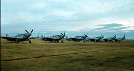 Dawn Mission Years ago, I think in the late Fifties or early Sixties, I was out at the old Vancouver airport. In those days one could drive right onto the tarmac to your Cessna or Piper Cub tethered in the grass bordering the runway. There were about 8 of these WWII Mustangs lined up, not usually there. A memorable sight in the morning light and I photographed them from several angles, stopping down the lens for this picture. I even shinnied up onto the wing of one to peer into the cockpit. That was when I noticed the sticker attached to the glass bubble - it said - 'Danger, keep away. Radiation Contamination.' (I went on to have children who were, somewhat, normal) P-51s at Vancouver airport early 50s I have no idea what happened to these glorious aircraft or what they had been through. I never found out where they came from or where they went. I believe the 'Bee' insignia can be traced to a Canadian squadron but have not been able to find it. Is this a secret? If you know, email me please. |